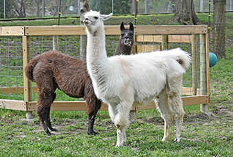 After entering the zoo through the admissions booth, head to the right to enter the Forgotten Forest, in between our Bald Eagles and our Turkey Vulture! There you can find her, munching on hay and special llama chow, greeting visitors, and modeling those signature llama expressions.